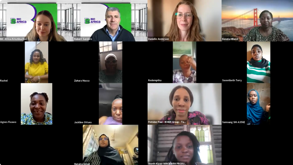 On the 24th of March, the BIC Africa Online Acceleration Programme for Women Entrepreneurs from Tanzania has kicked off, welcoming 27 outstanding women entrepreneurs across from Tanzania selected from 86 applications. This cohort represents a vibrant cross‑section of Tanzania’s entrepreneurial landscape, with participants leading startups and businesses across key sectors, including Agriculture, Food, Services, Manufacturing, Creative Industry, Digital, Technology, Health, Education and other sectors.